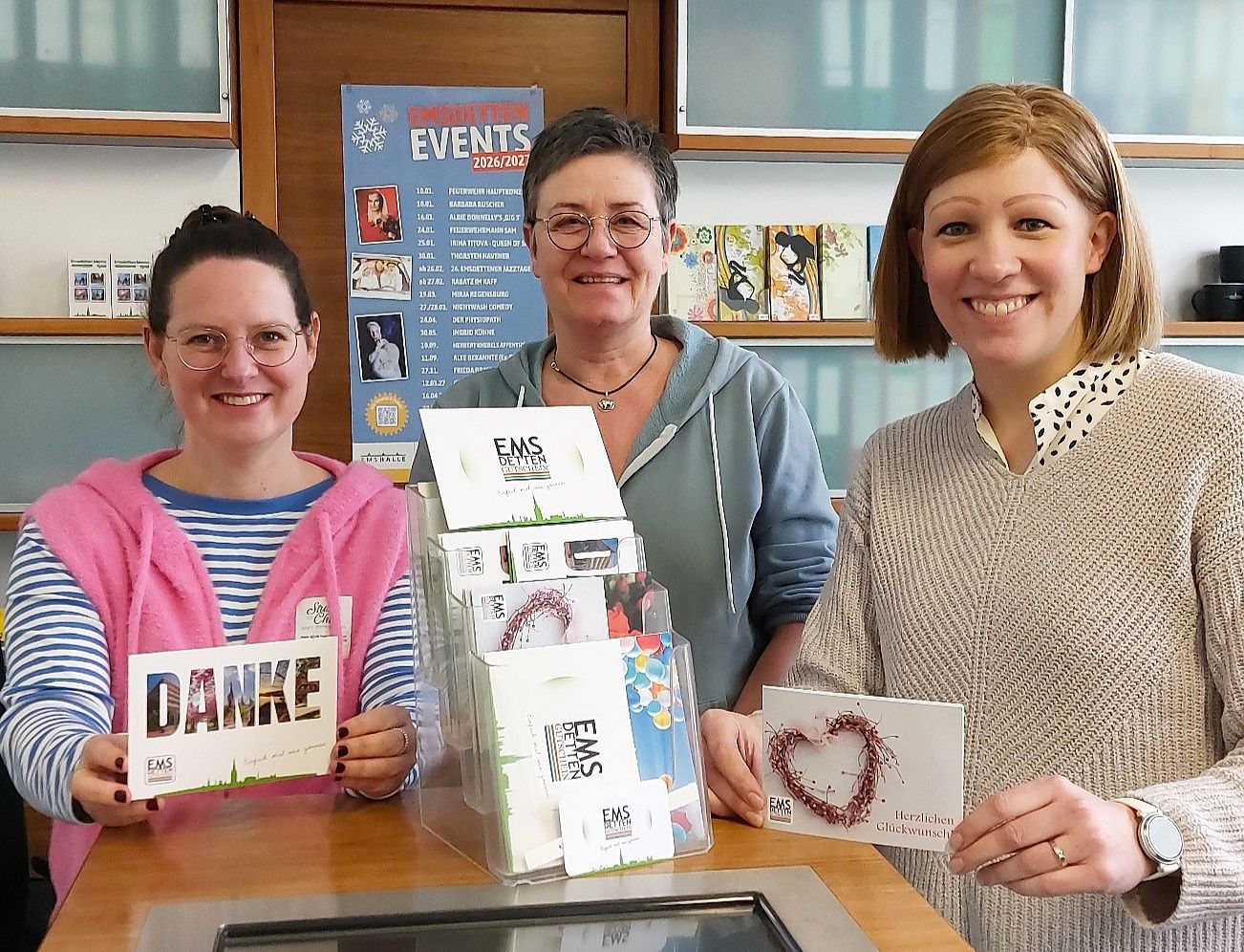 Das Team für den Emsdetten Gutschein im Verkehrsverein: Claudia Lüke, Petra Hülskötter und Ricarda Scholtyssek.