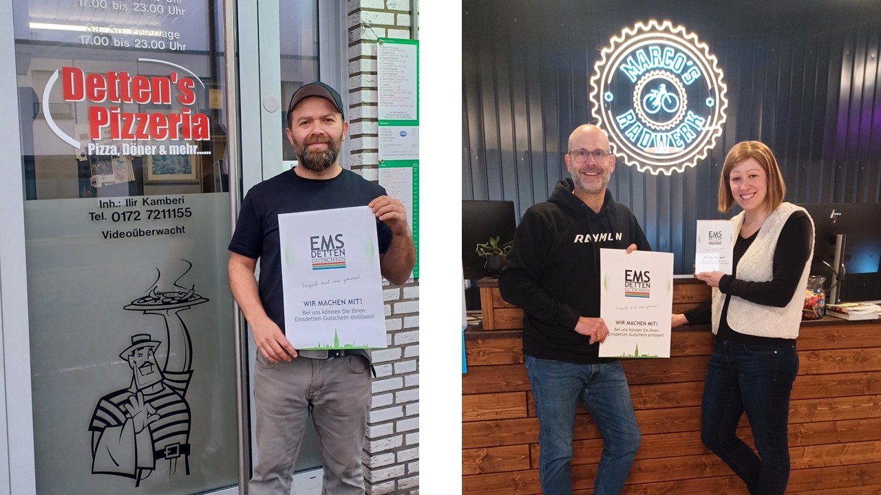 Gleichzeitig freut sich der Verkehrsverein Emsdetten über neue Akzeptanzstellen, die den Emsdetten-Gutschein ab sofort annehmen. Bei Detten's Pizzeria am Grevener Damm kann der Gutschein für